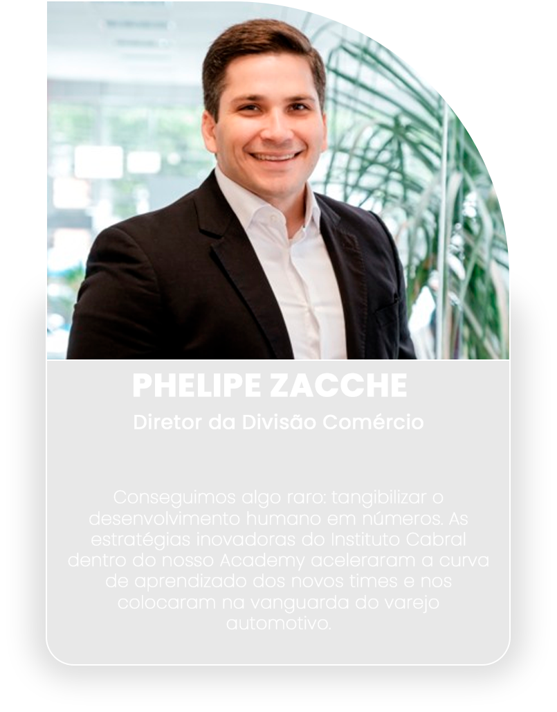 Com 36 anos de experiência em vendas, Glauber Cabral construiu uma carreira sólida de nível Vendedor de Carros do Mundo, após ter batido a marca de venda de 1 milhão de veículos, em 2012. Ao longo dos anos, acumulou conhecimento e prática, tornando-se uma referência no mercado automotivo. Por meio do Instituto Cabral, que fundou e dirige, Glauber já alcançou clientes em 22 estados do Brasil com o Programa Arrancada de Vendas e o inovador método Effective MINDSET®, com resultados expressivos.